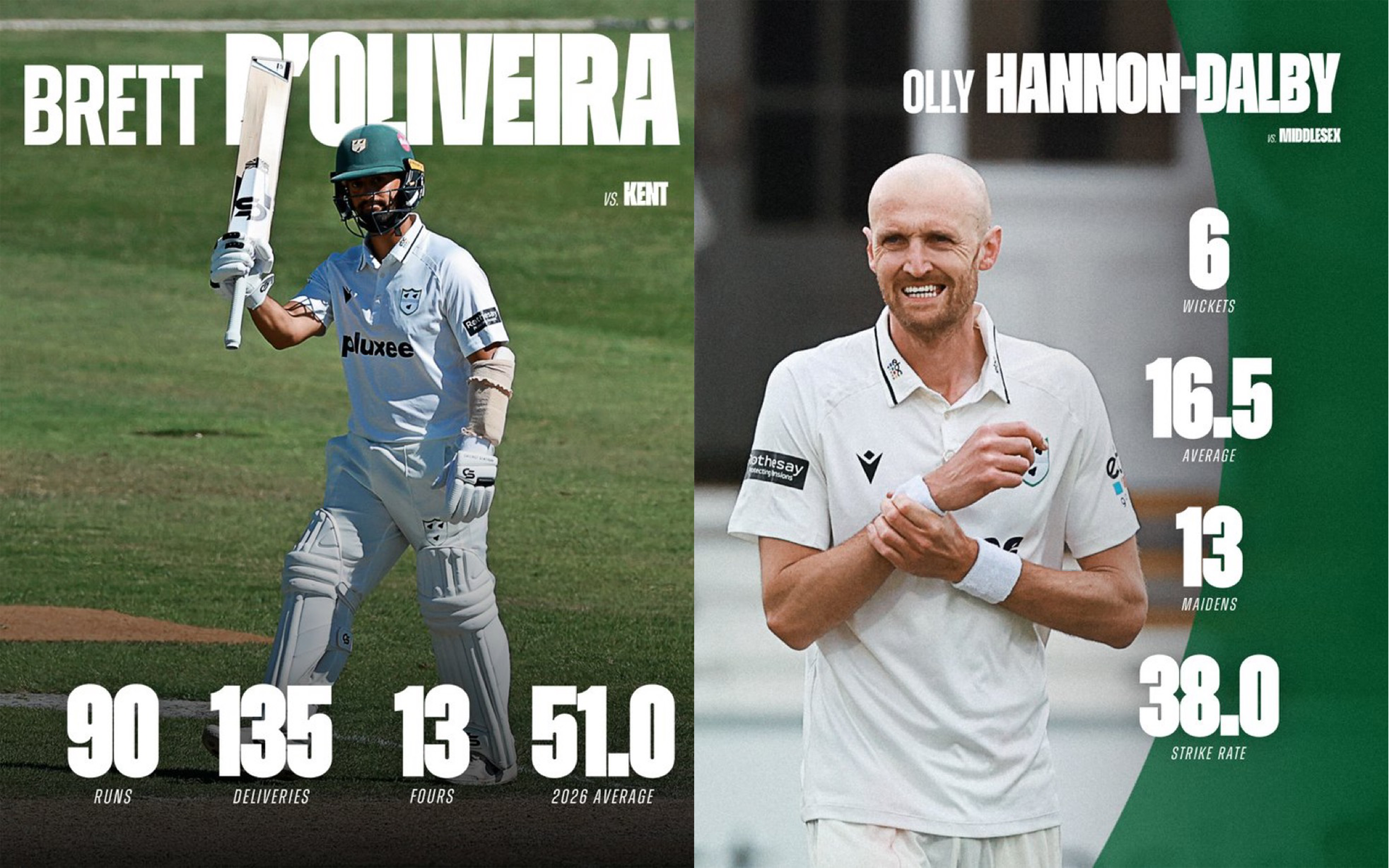 It's been a privilege working with the fantastic team over at Worcestershire County Cricket Club in the 2026 season, and here are the social designs I came up with for their red ball County Championship fixtures.